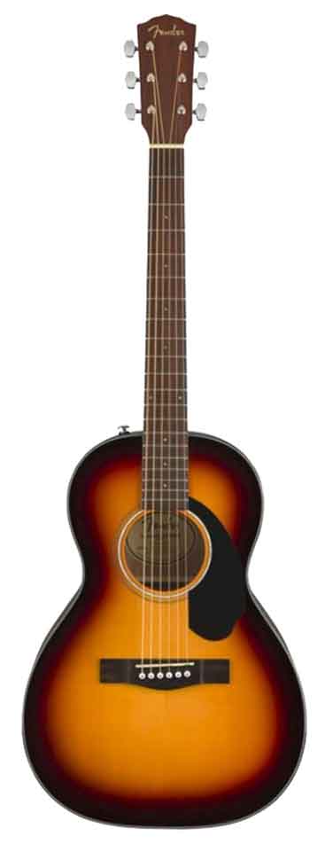 These guitars have a scale length in the neighborhood of 24.75” and are referred to oftentimes as a “12-fret” or “14-fret” guitar depending on where the neck meets the body. The older parlor guitars were 12-fret guitars, whereas many modern variations such as the Fender are 14-fret guitars.